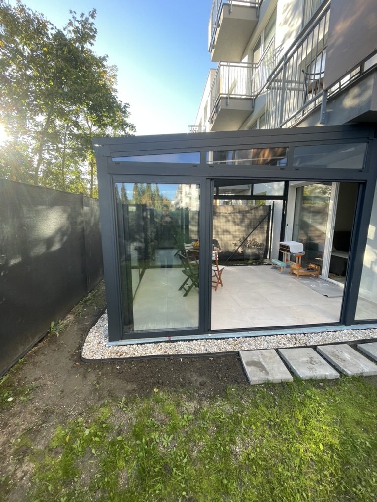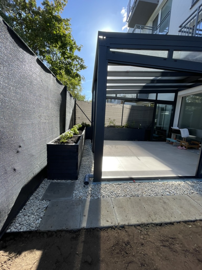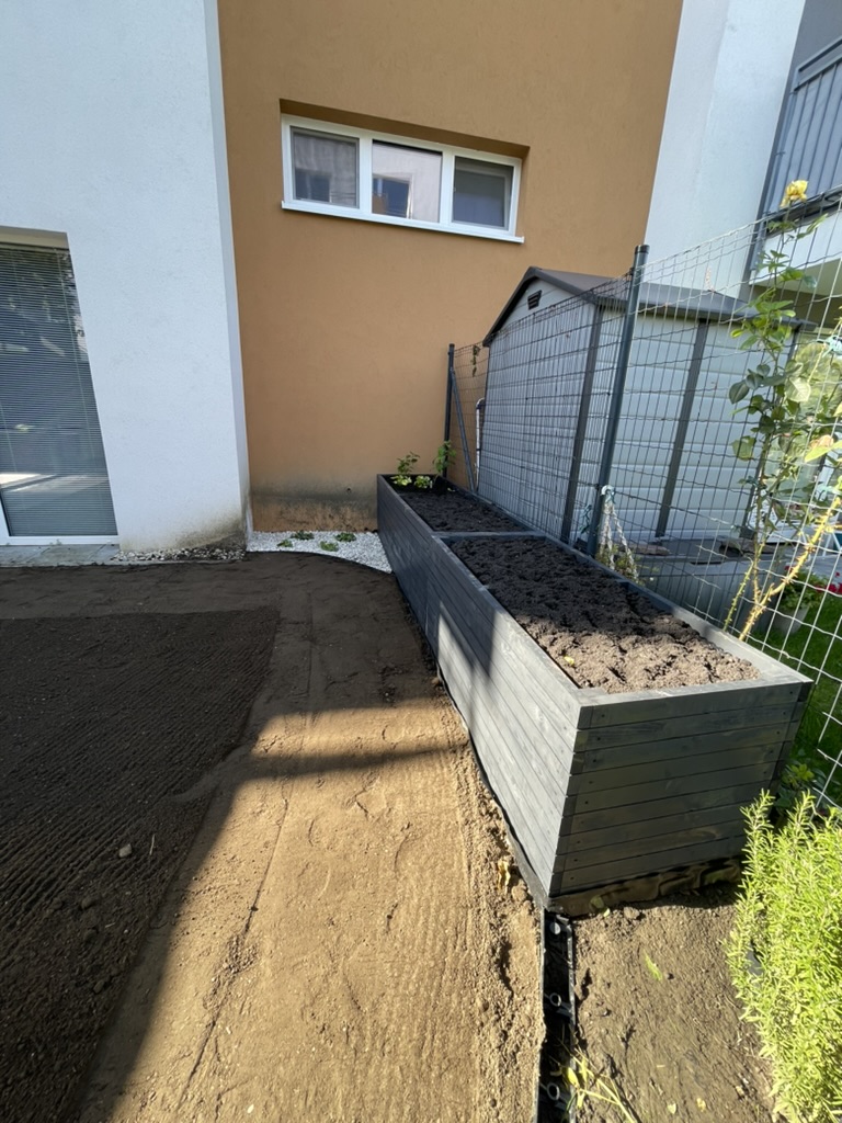 When redesigning the terrace at an apartment building, we faced limited space, so we created wooden raised beds for the residents and sowed a lawn seed mix suitable for shaded areas.