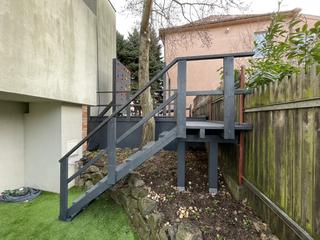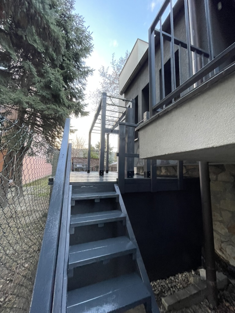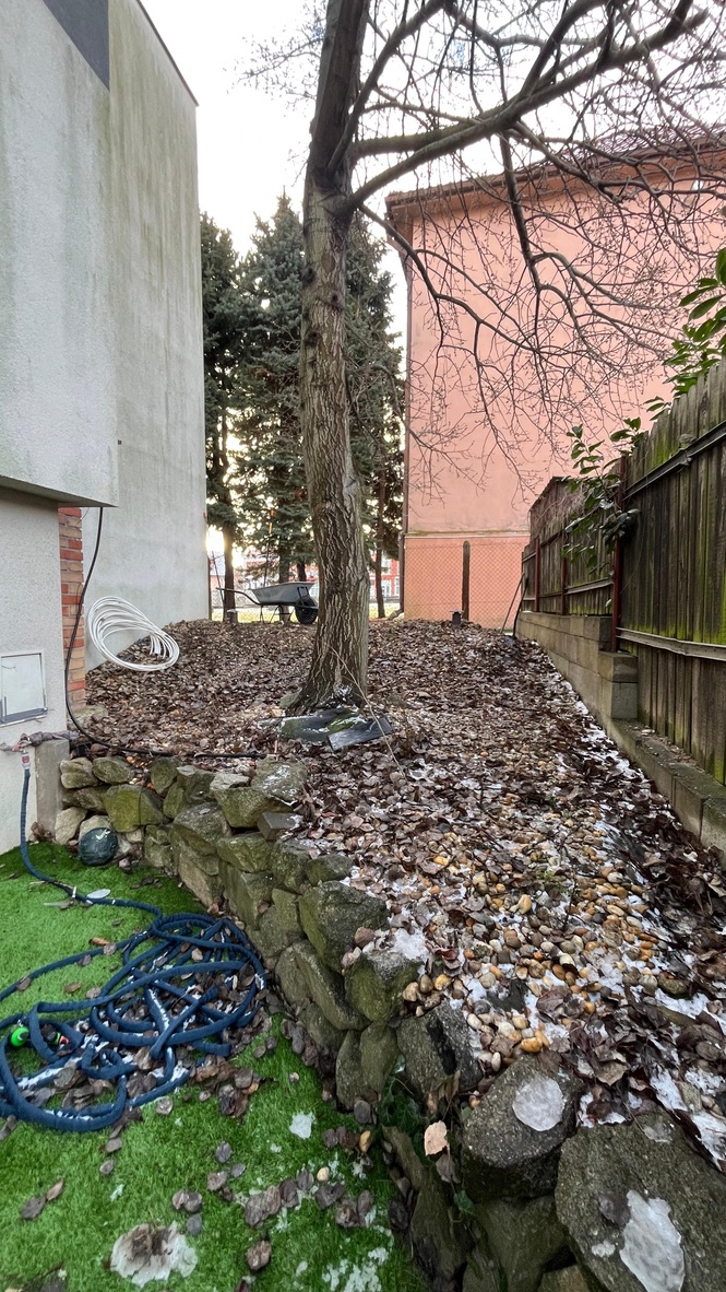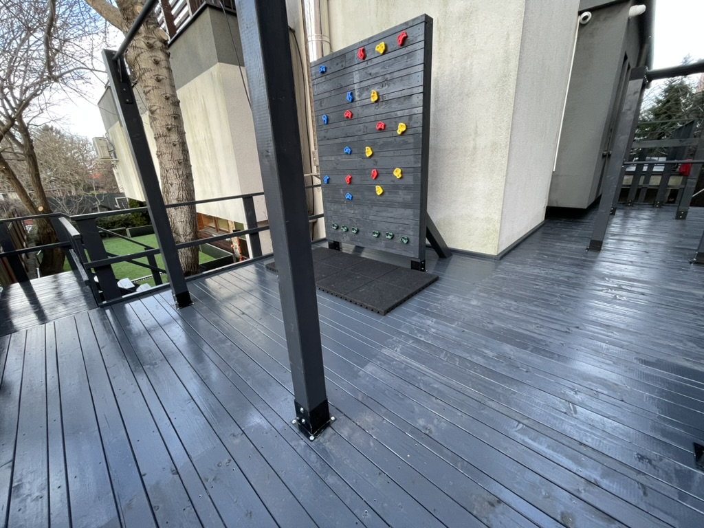 This project was not just about a standard garden design. We also had to design the structure of a wooden platform, on which we then created a workout playground for the homeowners, featuring elements suitable for both children and adults.